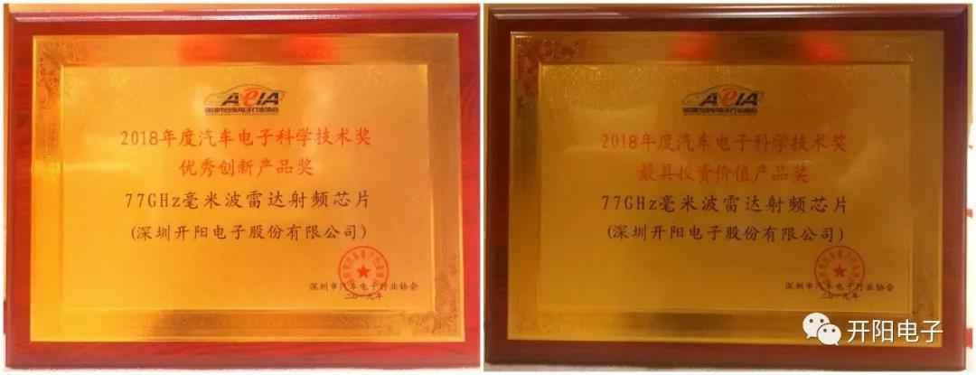 会上,hth华体网站登录入口-华体(中国)自主研发的“77GHz毫米波雷达射频芯片”一举获得两项中国汽车电子科学技术奖——“优秀创新产品奖”和“最具投资价值产品奖”。